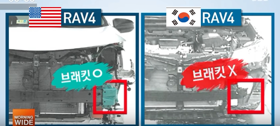 自動車メーカが仕向け地でレインフォースメントやモノコックの断面構造、板厚を変更しているのは昔から。