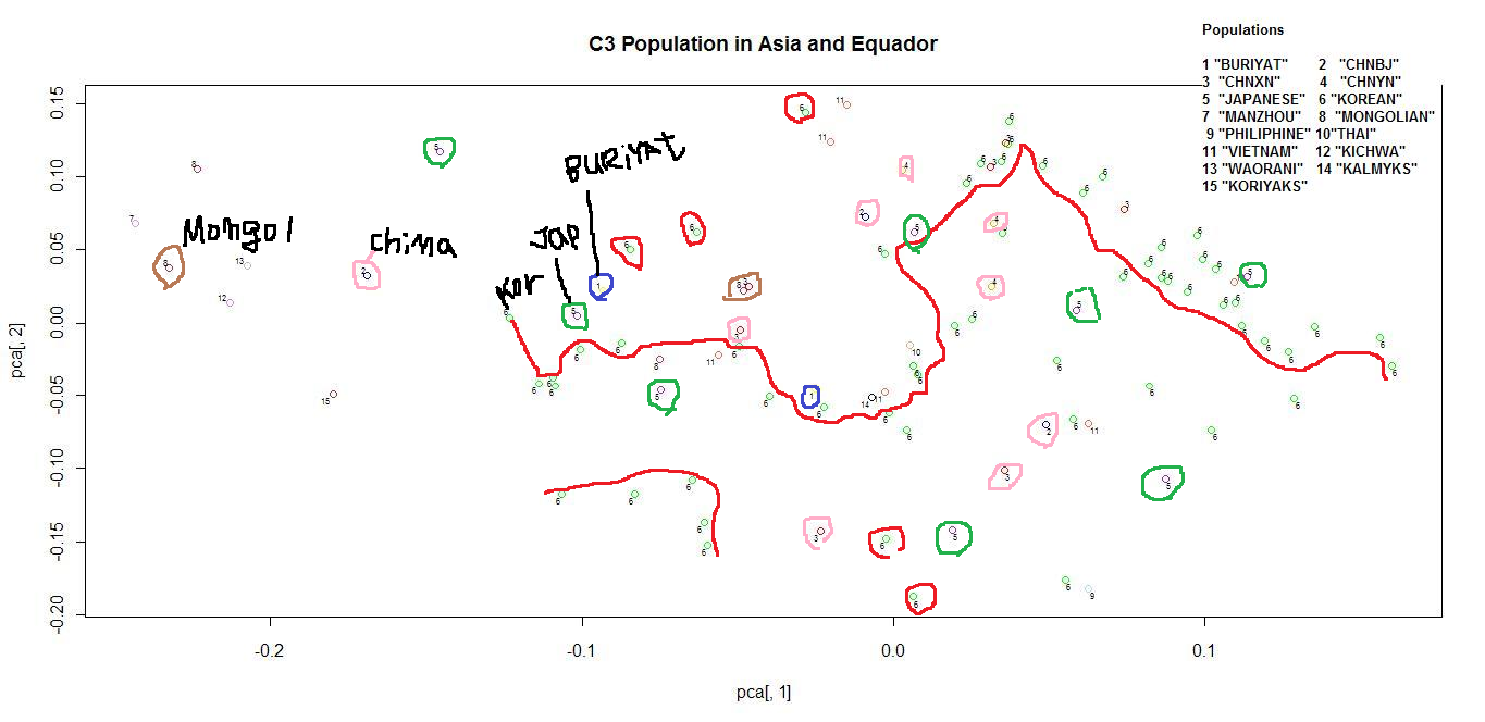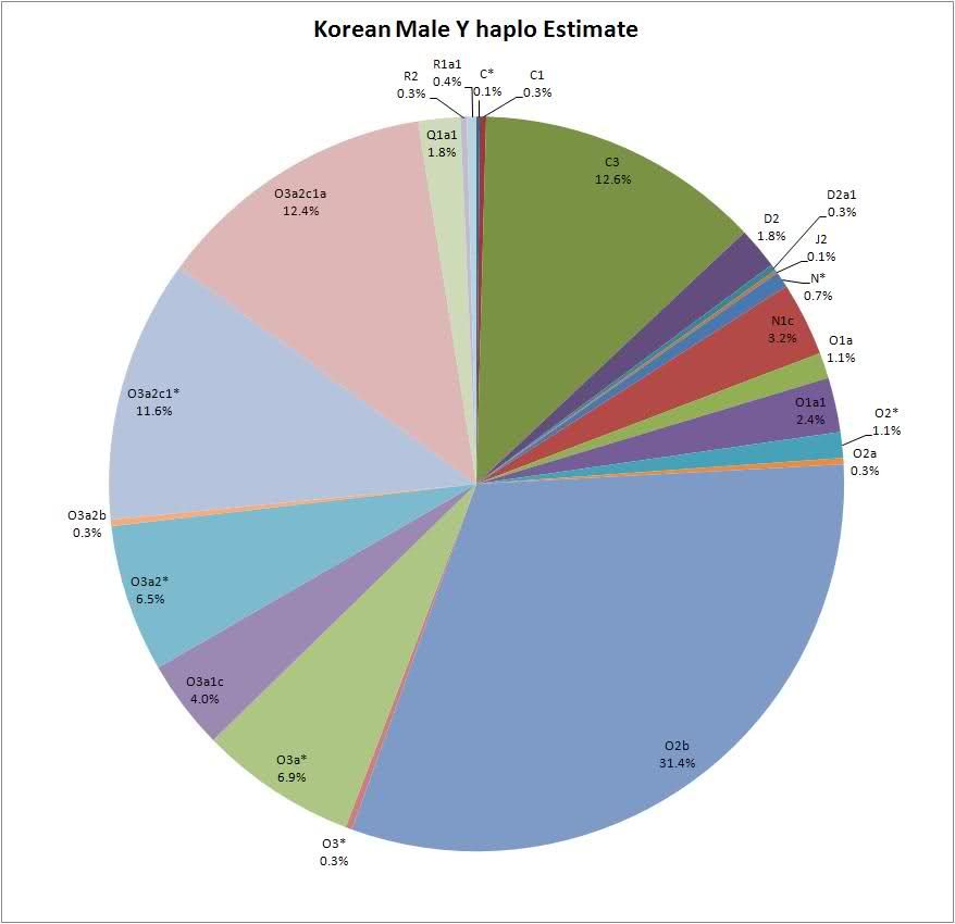 3) C3*은 중국 남부나 동남아시아에서 생겨 나서, 일부는 북진하고, 일부는 동북진하였는 데, 동북방향으로 한국인의 C3*은 동남아시아에서 분리를 시작한 시점이 북진한 그룹보다 휠씬 뒤의 일이어서, 남방계와 보다 가깝다.