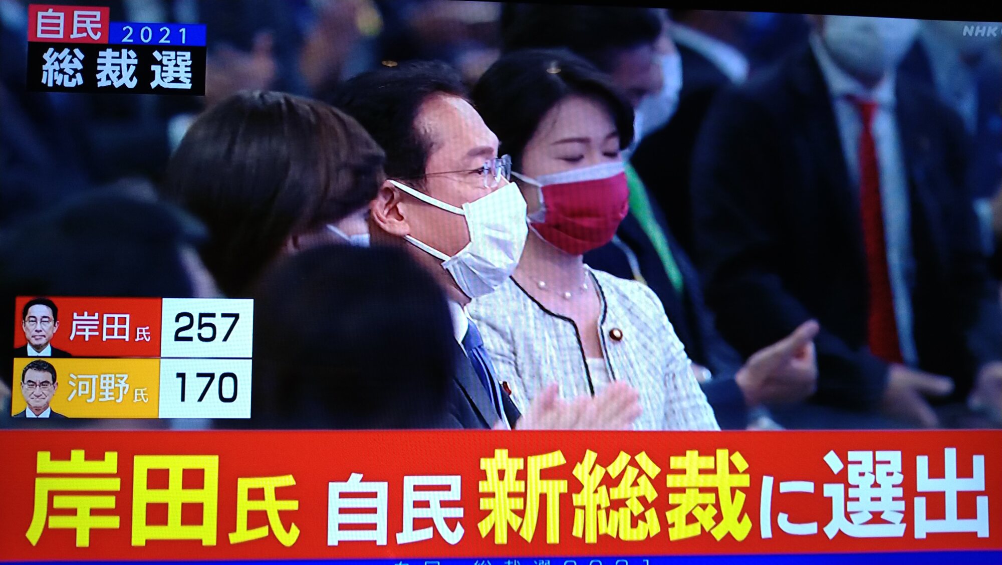 自民党総裁選は決選投票が行われた結果、岸田文雄前政調会長が河野太郎規制改革相を87票差で破り、新しい総裁に選出されました。