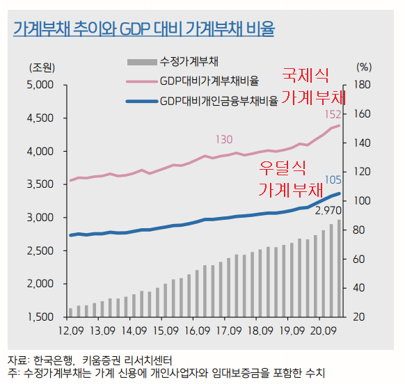 ところで、グローバル基準の統計のために使用される家計負債元の個人金融負債である家計信用がない。つまりギムチシク計算はすべて抜いている計算であり、家主の立場からの債務のチャーター、賃貸保証金とか抜けているという話である。