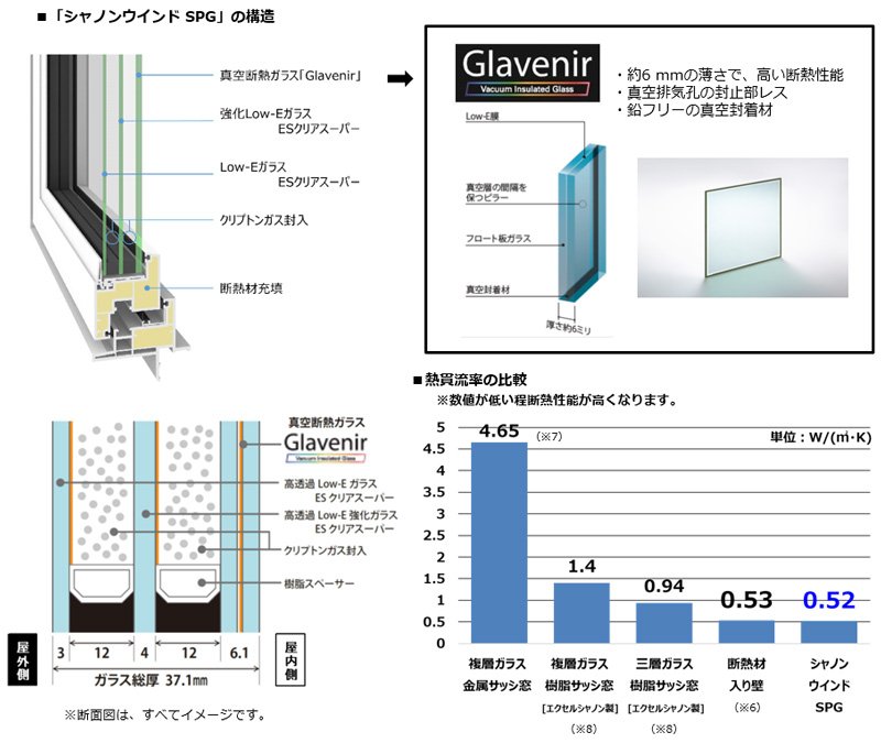 最近日本では複層ガラス以上の断熱・遮音性能が有る三層ガラスが出ている。