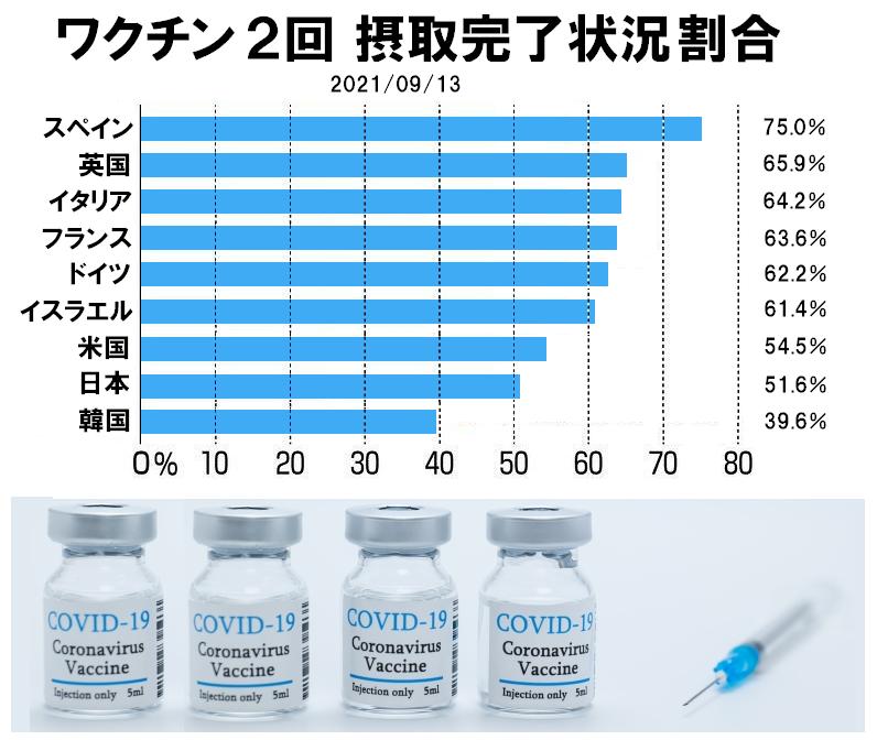 しかし、2回接種完了者は韓国38%・日本50%・米国54%