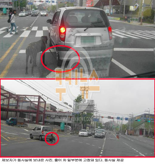 강아지 2마리가 차량에 매달린 채 끌려갔다는 내용의 국민신문고가 접수돼 경찰이 수사에 나섰다.
