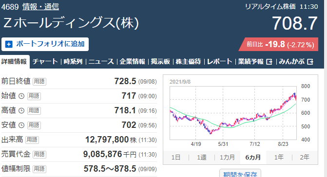 1日で数千億ウォン消えていては、Zホールディングスで得た利益など何の足しにもならない。明日も下がっていたら買いだ!