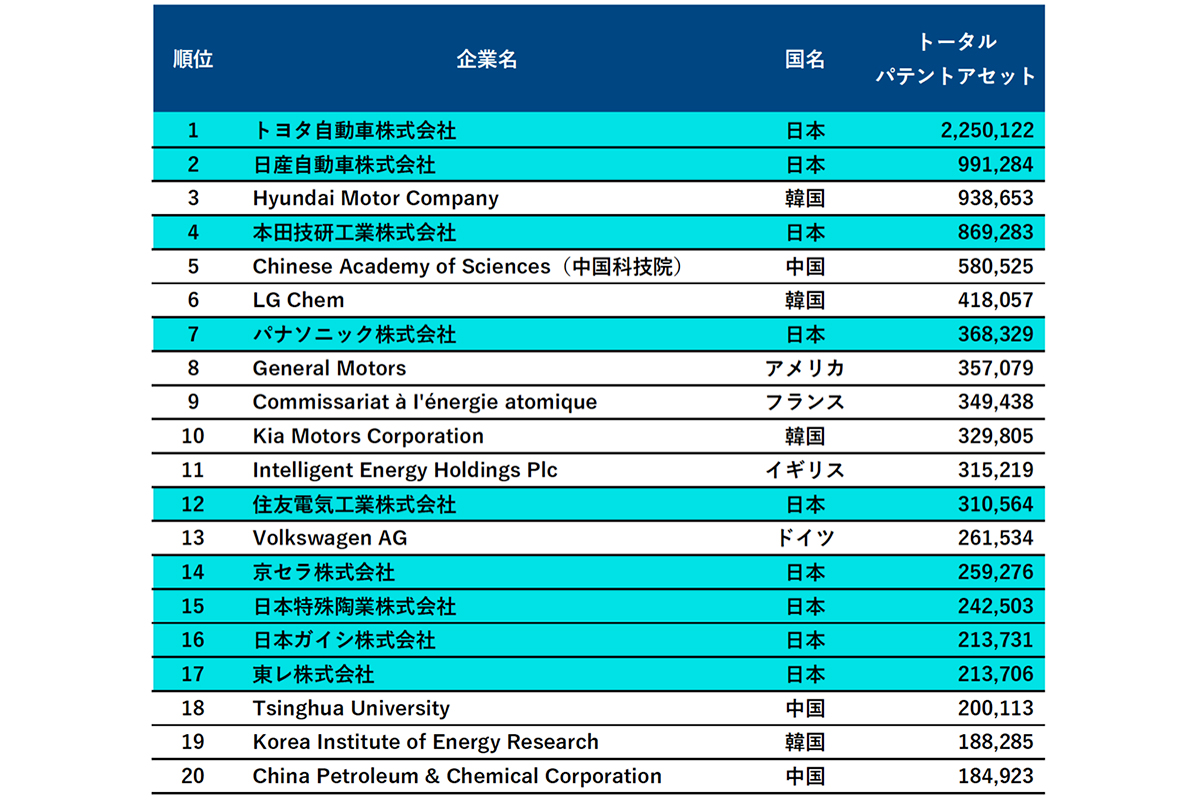 ★水素技術「総合的競争力ランキング」トップ10にトヨタほか日本4社