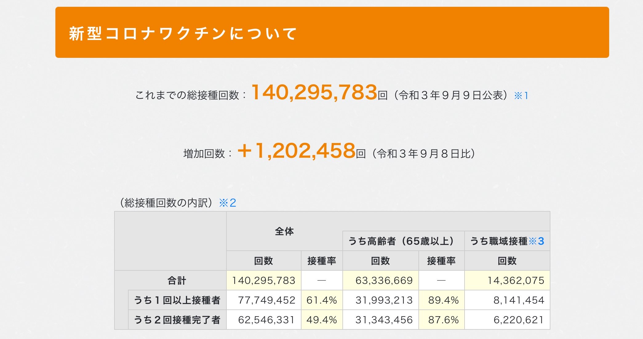 日本の総接種数は韓国だったら全人口に対して2回以上の数になっている。