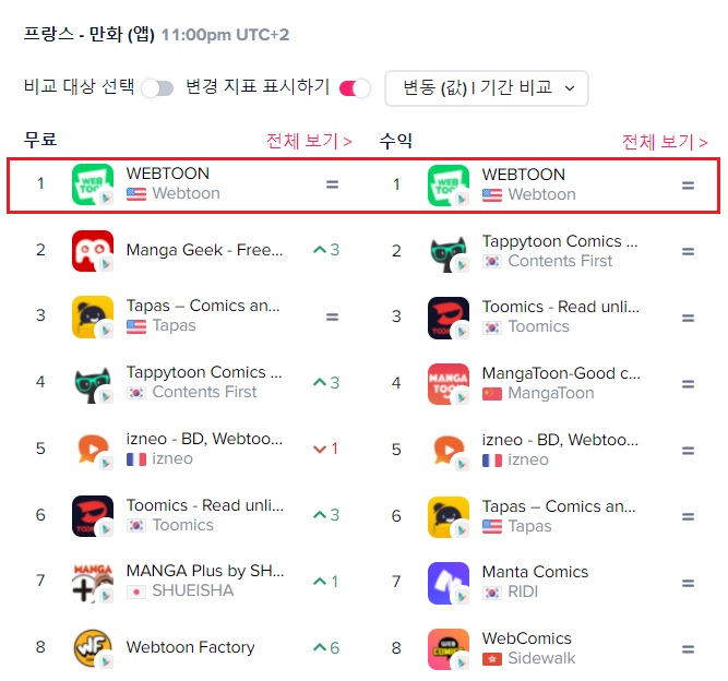 10일 네이버웹툰에 따르면 지난해 11월 유료 서비스 전환 직후부터 현재까지 200일 이상 프랑스 구글플레이 만화 부문에서 1위 자리를 지키고 있다.