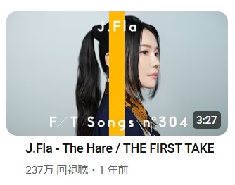J.Fla「The Hare」は、現在の再生数が 237万311回で、全519本(3ヵ月以内を除く)中、単純再生回数では 384位。