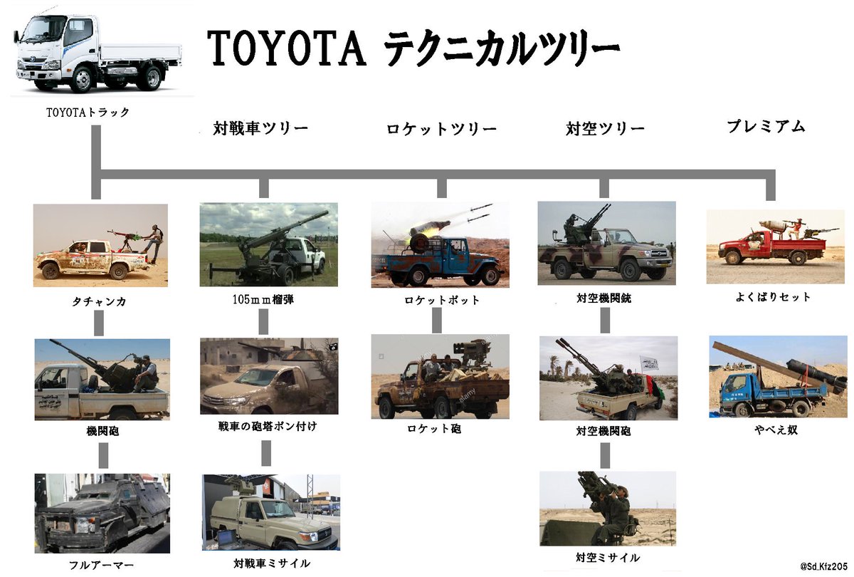 その常識外の耐久性は、紛争の具にされてしまうこともある。中東やアフリカの戦場では、ゲリラや反政府勢力がハイラックスを運用している。荷台に機関銃を積み、即席の戦闘車両として最前線で戦わせるのだ。1986年に勃発したチャド・リビア紛争が『トヨタ戦争』と呼ばれているのはこのためだ。