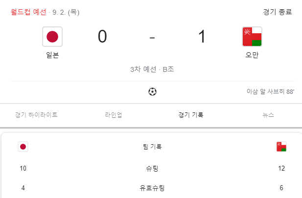 이번 월드컵 탈락 확률 99%의 일본전 대회 우승팀이잖아. 지는 것은 부끄러운 것이 아니다.