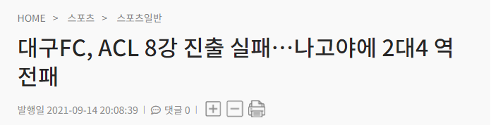 J리그 최강팀, K리그 팀에게 패배