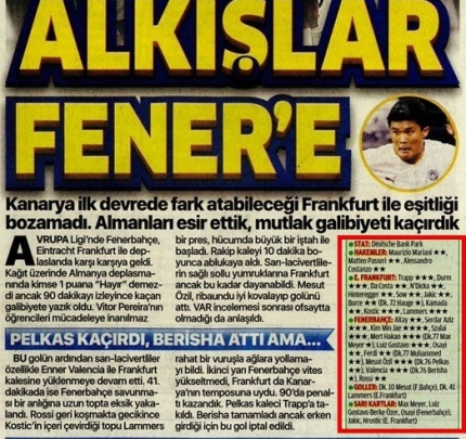성공적인 유럽대항전 데뷔 무대를 가진 김민재는 터키 언론 포토맥이 별점으로 매긴 평점 순위에서 별 4개로 양 팀 통틀어 최고 평점을 얻었다. 선제골을 터뜨린 메수트 외질과 동점골을 터뜨린 샘 람머스(별 3개)보다도 높은 수치였다.