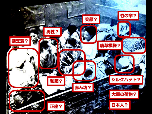 ・竹の傘?・唐草模様?・シルクハット?・大量の荷物?・日本人?