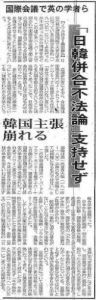 「当時の国際慣例法からすると、韓国併合が英米をはじめ列強に認められている以上は、仮に手続きに瑕疵があったとしても無効とは言えない」と指摘した。