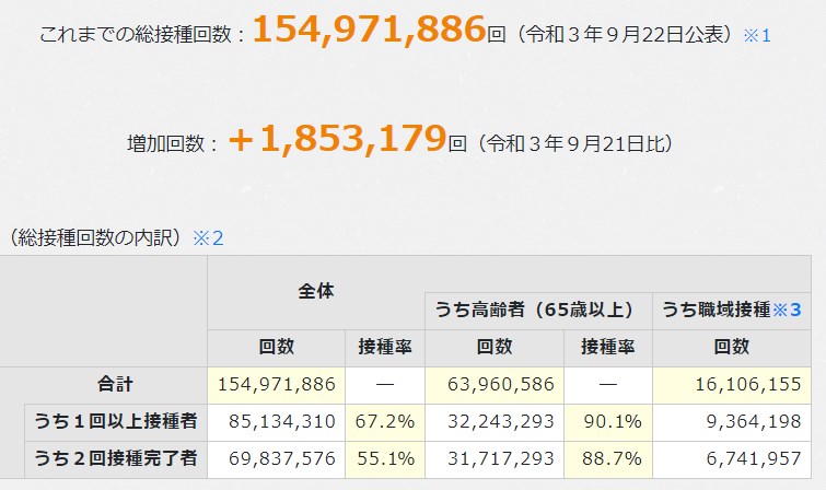 10월 말까지 완전 접종률 70% 돌파 합니다.とにかく日本と比べなければならいという