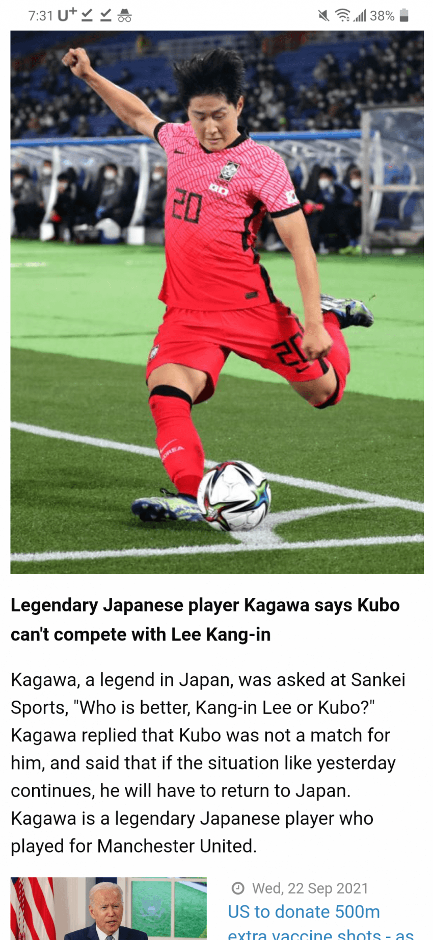 일본인들이 아무리 발작을 일으켜도 쿠보 타케후사가 45분 뛰고 벤치로 쫒겨난 것이 현실이다