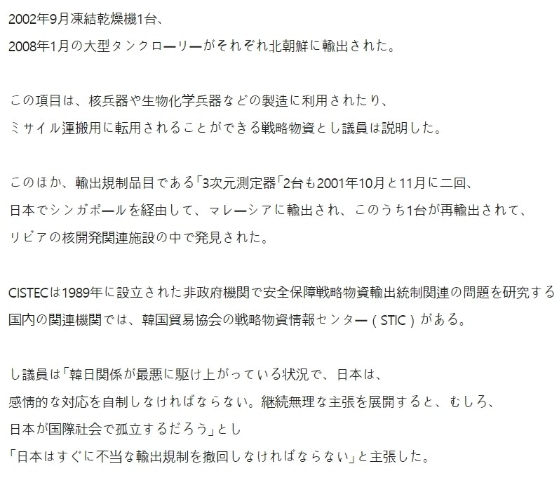 日本の管理体制にこそ問題があって北朝鮮に輸出されてる。。。。。って反論を見かけた記憶があって