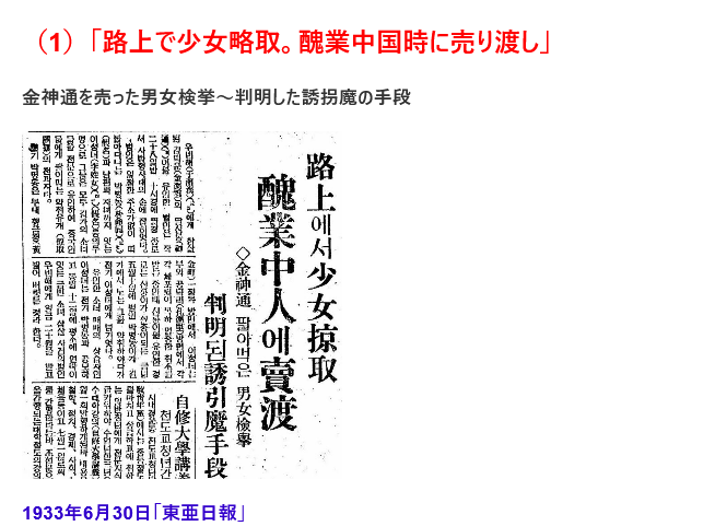 (1)「路上で少女略取。醜業中国時に売り渡し」