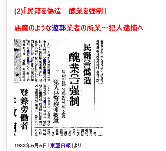 3.当時の日本(朝鮮も含む)では、当局に認可された売春宿で合法的に売春が行われていた。