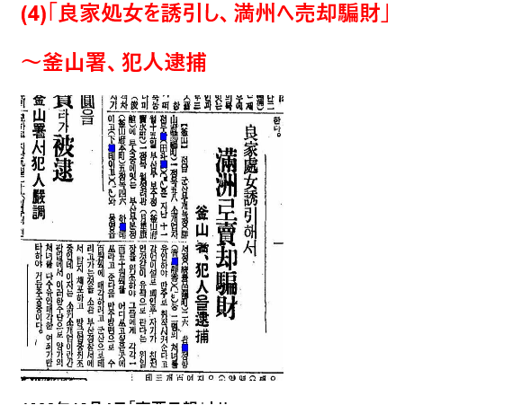 「市内に住む呉*換は、漢南楼という商号で娼妓していたが、朴*南という16歳の少女を350円で買い、年齢不足で娼妓が出来ないため、 兄弟の戸籍を使って営業許可を得ようとしていたことが発覚。前記のような方法で多数の幼い少女を使っていた