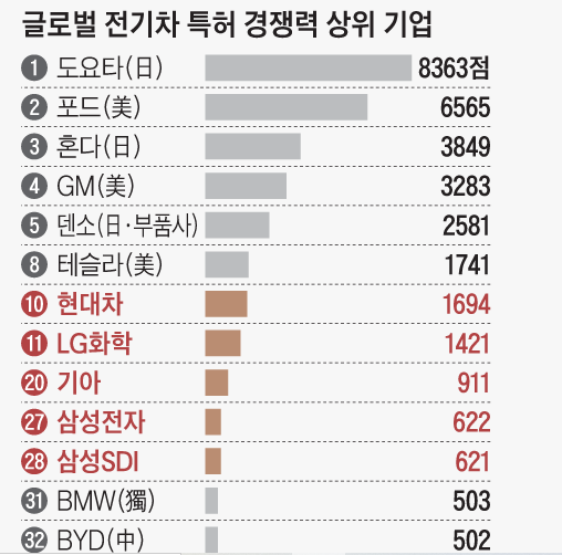 EV競争力…特許1位はトヨタ、現代自動車10位と起亜自動車は20位‥‥終わってしまう!