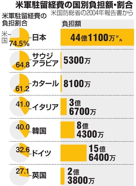 日本の1人当たり国防費は年4万円 韓国の3分の1
