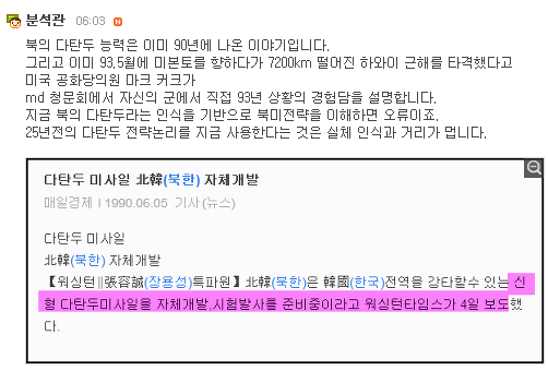 따라서 김명철 등이 북한은 이미 모든 종류의 핵무기들을 다 가지고 있다는 말이 별로 틀리지 않을 것임도 쉽게 추측해볼 수 있다. 더구나 그것이 북한 단독으로 개발된 것도 아니고 이미 첨단 핵기술을 가진 러시아 핵과학자들이나 미사일 기술자의 주도하에 개발된 것이라면 사실 핵실험 자체도 필요 없는 것이지만...>>223