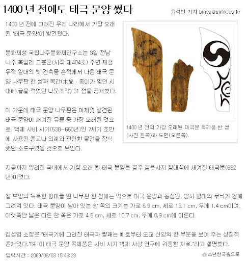 "우리나라 태극 문양은 682년에 만들어진 데 비해서, 중국 태극 문양은 우리보다 훨씬 뒤에 1351년 명나라 시대 때 등장했거든요."