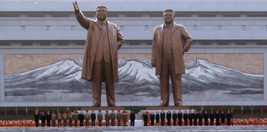 平壌の万寿台大記念碑にある金日成像と金正日像は高さ約21メートル。