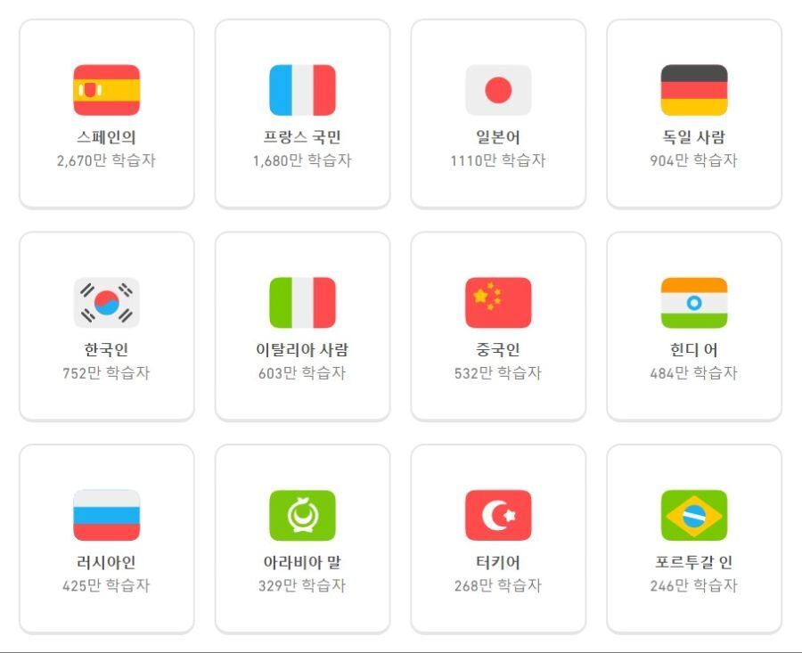 1人が複数の言語に登録している人も多いかもしれません。別の方法で、語学学習者数を調べてみる。