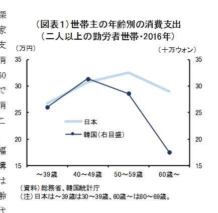 韓国のシニア層(60 歳~)の消費不振が深刻である。日本と比較すると、韓国で