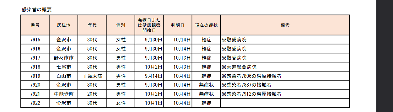 画像は石川県のコロナ感染の発表数