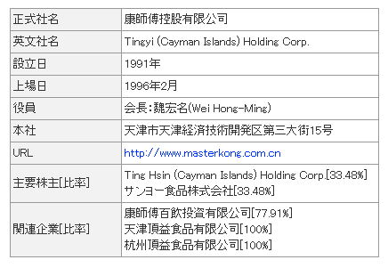 備考:中国の「康師傅」の主要株主はサンヨー食品(日本企業)である。