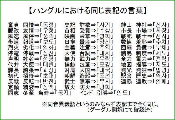 機能性文盲が多いのもこの辺りに原因があるんだろうなマジで英語の場合は同音異義語でもラテン語由来で綴りが変わったり識別出来るのに朝鮮語は欠陥が有るとしか思えない