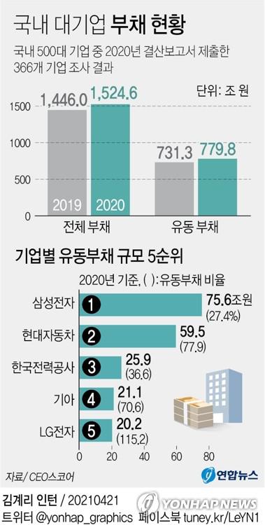 大企業、昨年の負債1千500兆ウォン突破●年内に返済すべき借金780兆ウォン
