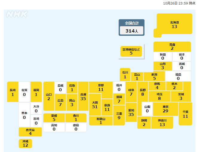 10月26日 新たに確認された感染者数>>101