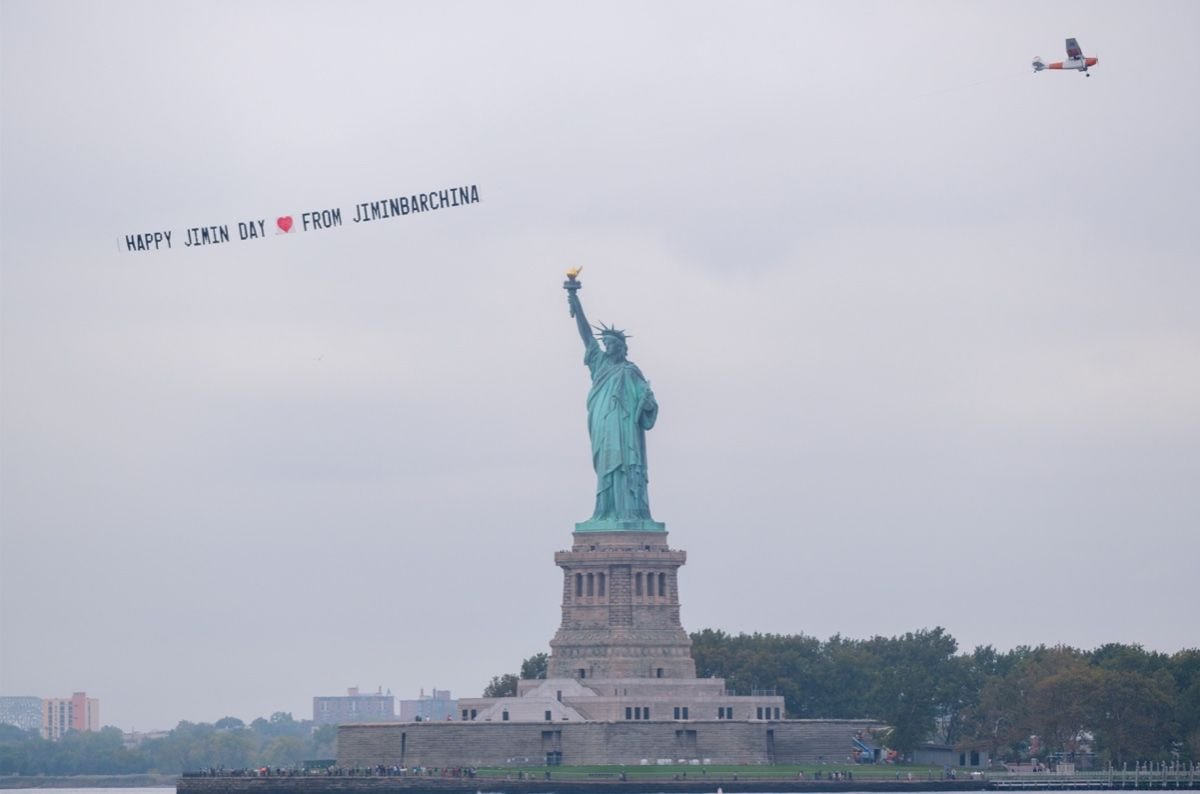 BTS 중국팬클럽, 미국 자유의 여신상 근처에서 생일 축하 이벤트