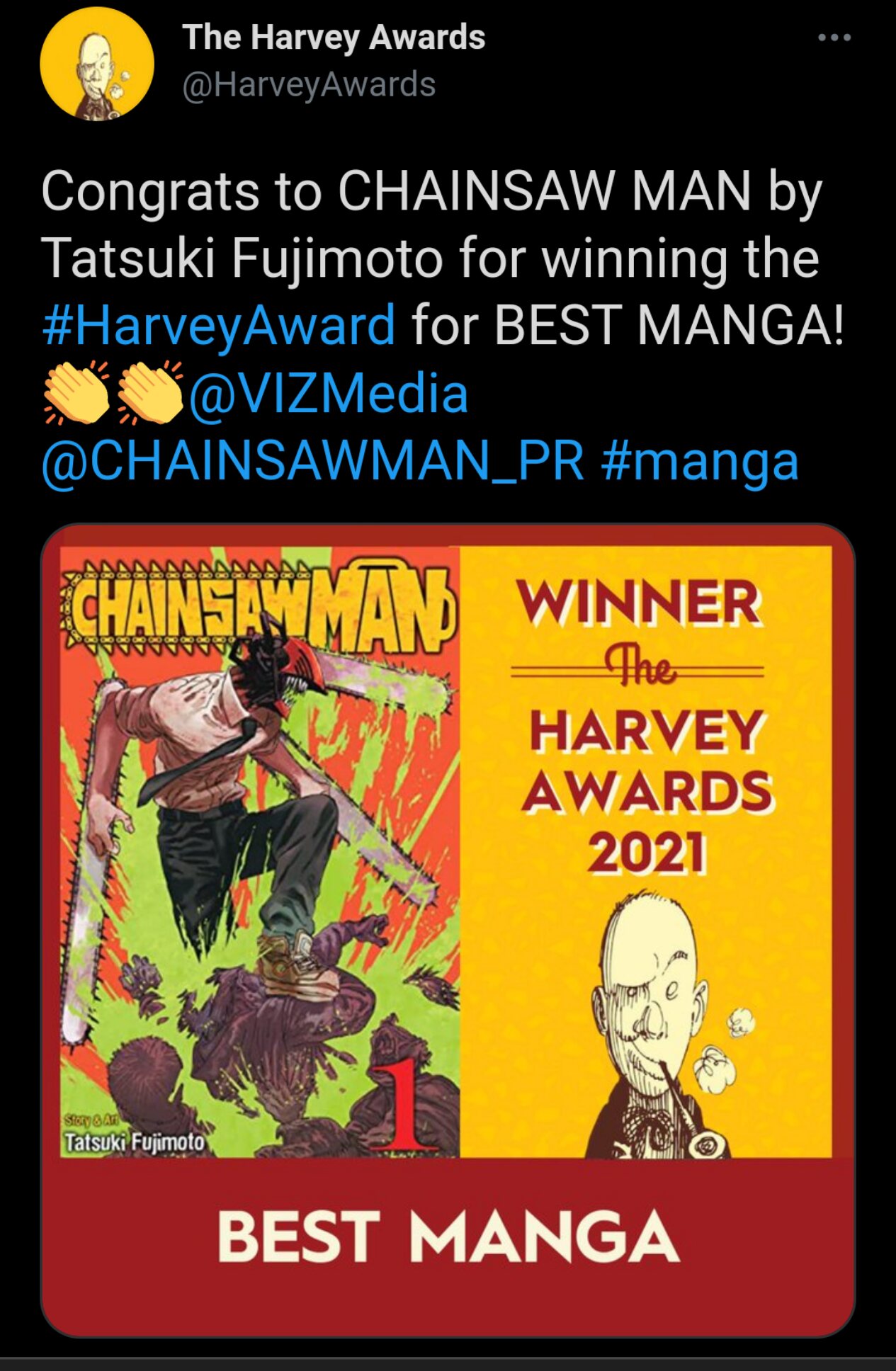 漫画「チェンソーマン」がハーベイ賞(ハーヴェイ賞、Harvey Award)を受賞しました