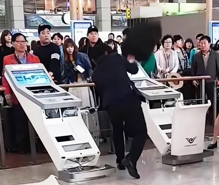 「IT先進国のウリナラ空港には旧式の対人カウンタは必要ないニダ」って処でしょう。写真を見る限りそれなりの身なりをしており無学文盲の徒では無い様に思えるが、その者が操作できない自動機ってどれだけ低質なアプリなのか(苦笑。火病を拗らせ暴れる利用者も利用者ならばそんな欠陥システムを開発するSEや発注者の能力も相当なモノだね。