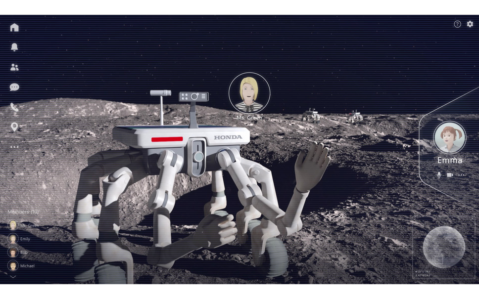 「月面」では、燃料電池などのエネルギー技術、「ASIMO」で培ったロボティクス技術を展開する。エネルギーはホンダの燃料電池と高圧水電解の技術を基に、水を電気分解して酸素と水素を貯蔵し、発電や月面居住空間への酸素供給などを行う「循環型再生エネルギーシステム」の構築を進める。また、ロボティクスは今回、開発を発表した「アバターロボット」(分身ロボット)を応用し、月面での「遠隔操作ロボット」の実用化を目指している。いずれもJAXA(宇宙航空研究開発機構)との共同研究として推進する。