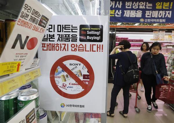韓国での日本製品の不買運動は2019年7月、日本政府による対韓輸出管理強化に抗議する目的で始まった。「脱日本」をスローガンに、「買わない、売らない、行かない」とする「ノージャパン運動」が韓国全土で展開された。