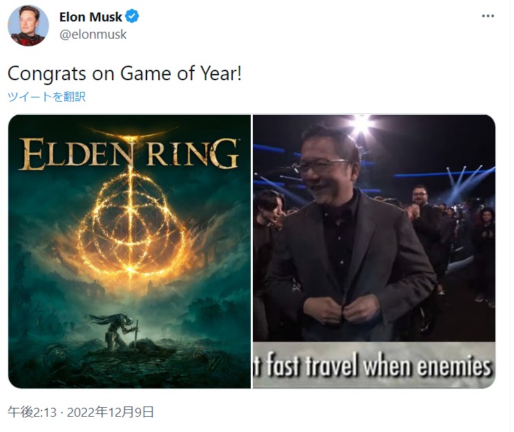 YouTubehttps://m.youtube.com/watch?v=pCTb13I_jEQ&t=8sゲーム・オブ・ザ・イヤーはエルデンリングだったね。
