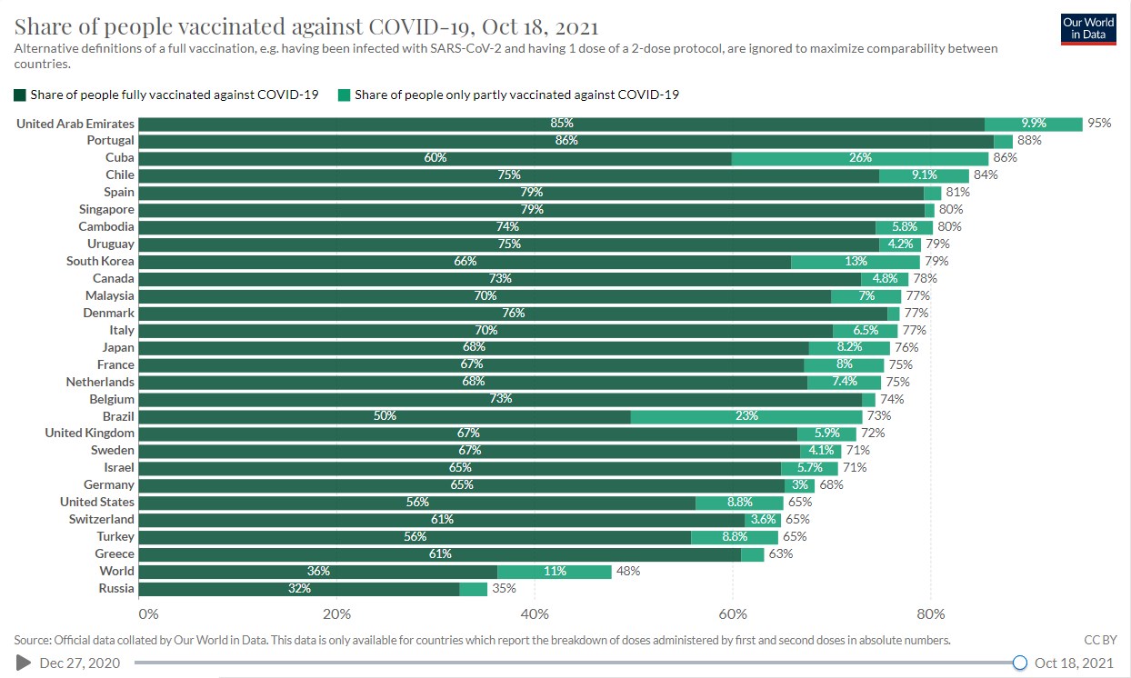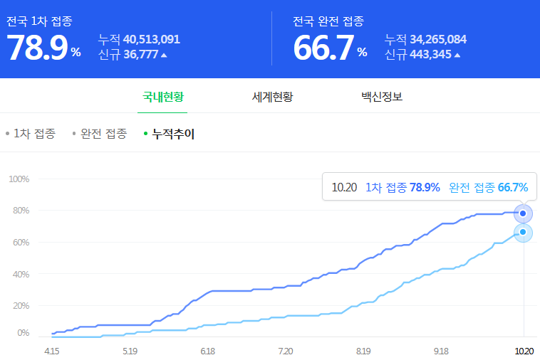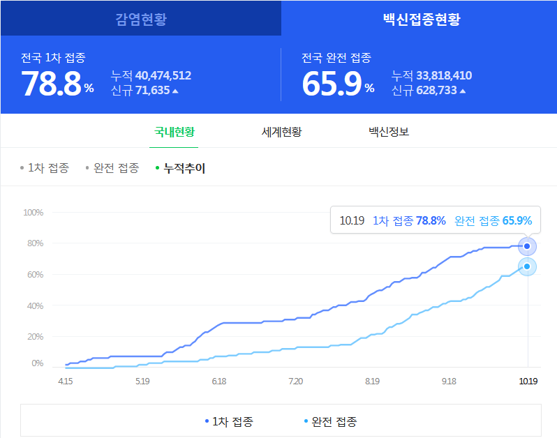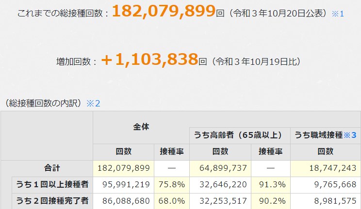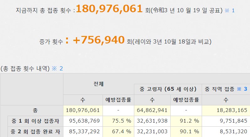 ウダウダ五月蠅いから、はよ滅べや!世界平和のためだ。韓国の暫定数値 ワクチン割合(2021-10-19)