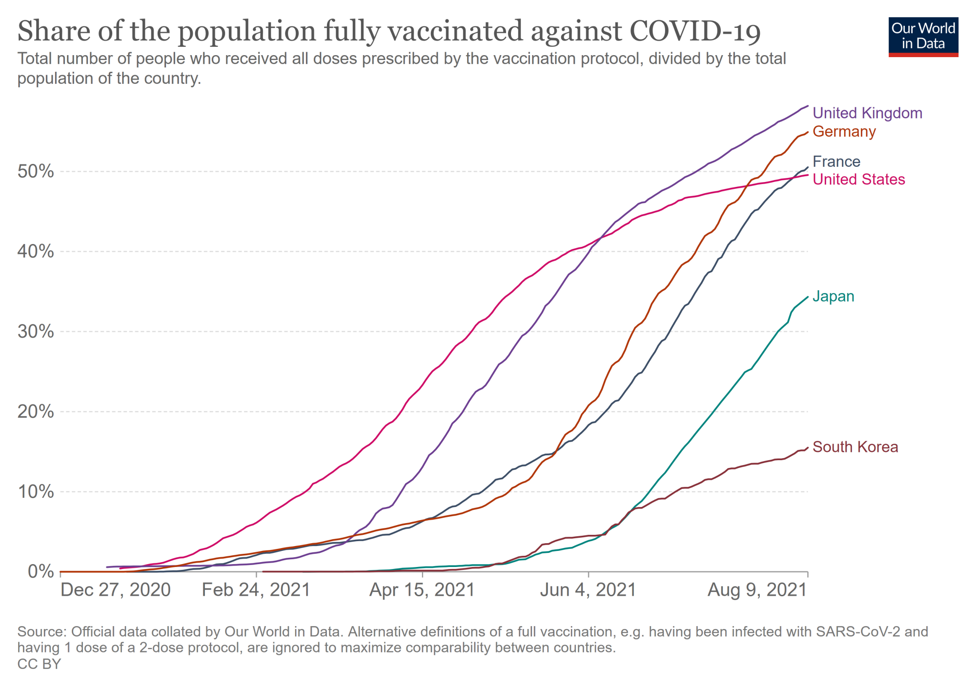 ゴールラインを過ぎた相手を追い抜いても、意味がないよ。摂取率がほぼ同じなのに韓国の感染人数が下がらないのは何故なんだ。