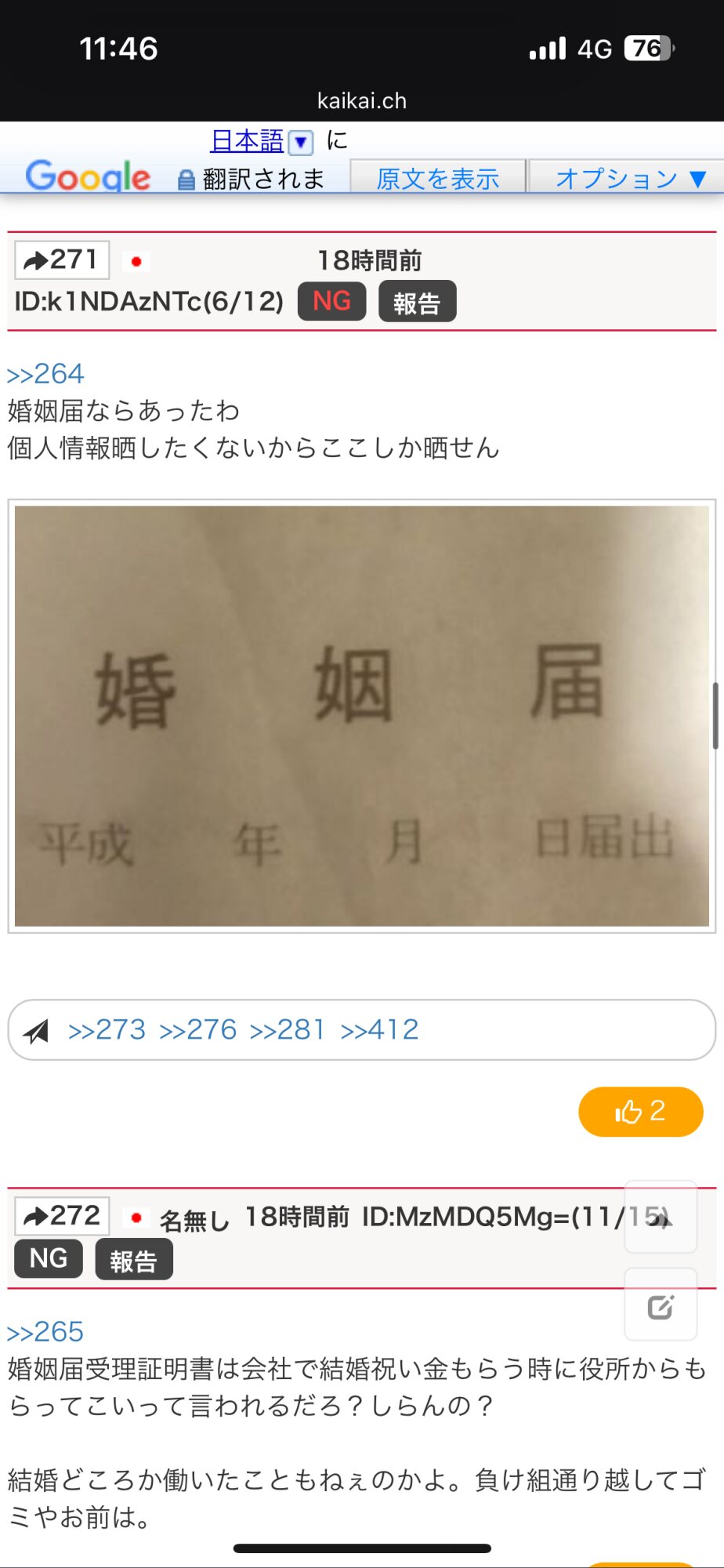 婚姻届を「何故か持ってる」既婚チックの老害ちゃん最高過ぎるww