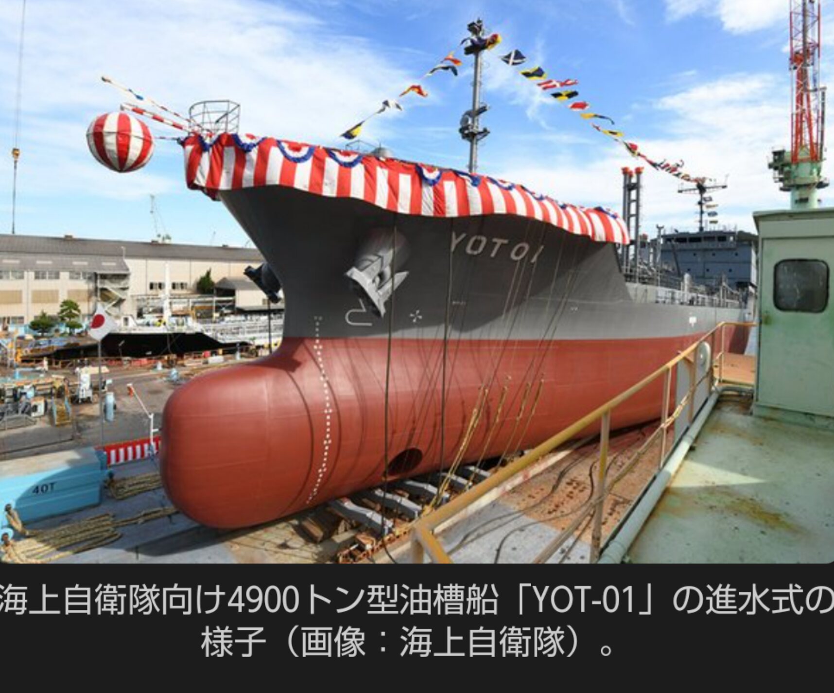海上自衛隊は2021年10月20日(水)、新来島波止浜どっく(愛媛県今治市)において、新規建造された油槽船「YOT-01」の進水式を実施しました。