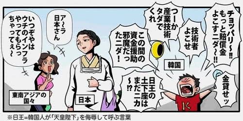 ムン韓国と話し合い対日タカリの機会を与えたら、4年後の次期総選挙、次期参議院議員選挙で自民党は大敗するだろうな。岸田政権も終わる。あんな隣人国は、日本から金をムシり獲ることしか考えていない。一度切っ掛けを与えると、今後10年以上も対日揺さぶりをかけてくるぞ。「金くれ、くれないと揺さぶり、嫌がらせをするぞ。」とね。>>44