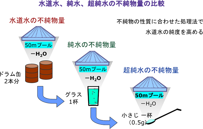 超純水とは、有機物や電気伝導度を最小化し、不純物がほとんどないよう精製した水をいう。特に半導体製造工程前後の洗浄作業に活用するが、生産性を高める必須要素に挙げられる。