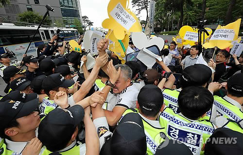 彼らを押さえつけている警察は親日派に違いない日本は別に韓国のデタラメな教科書に文句ひとつ言ってない。