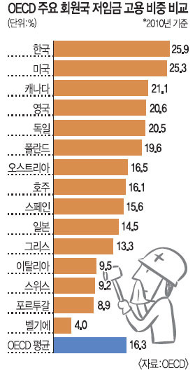 要するに、韓国では賃金取得者の比率が低い、超短時間就労者の比率が高い、という2要因によって平均呻吟が高くなるのですよ。